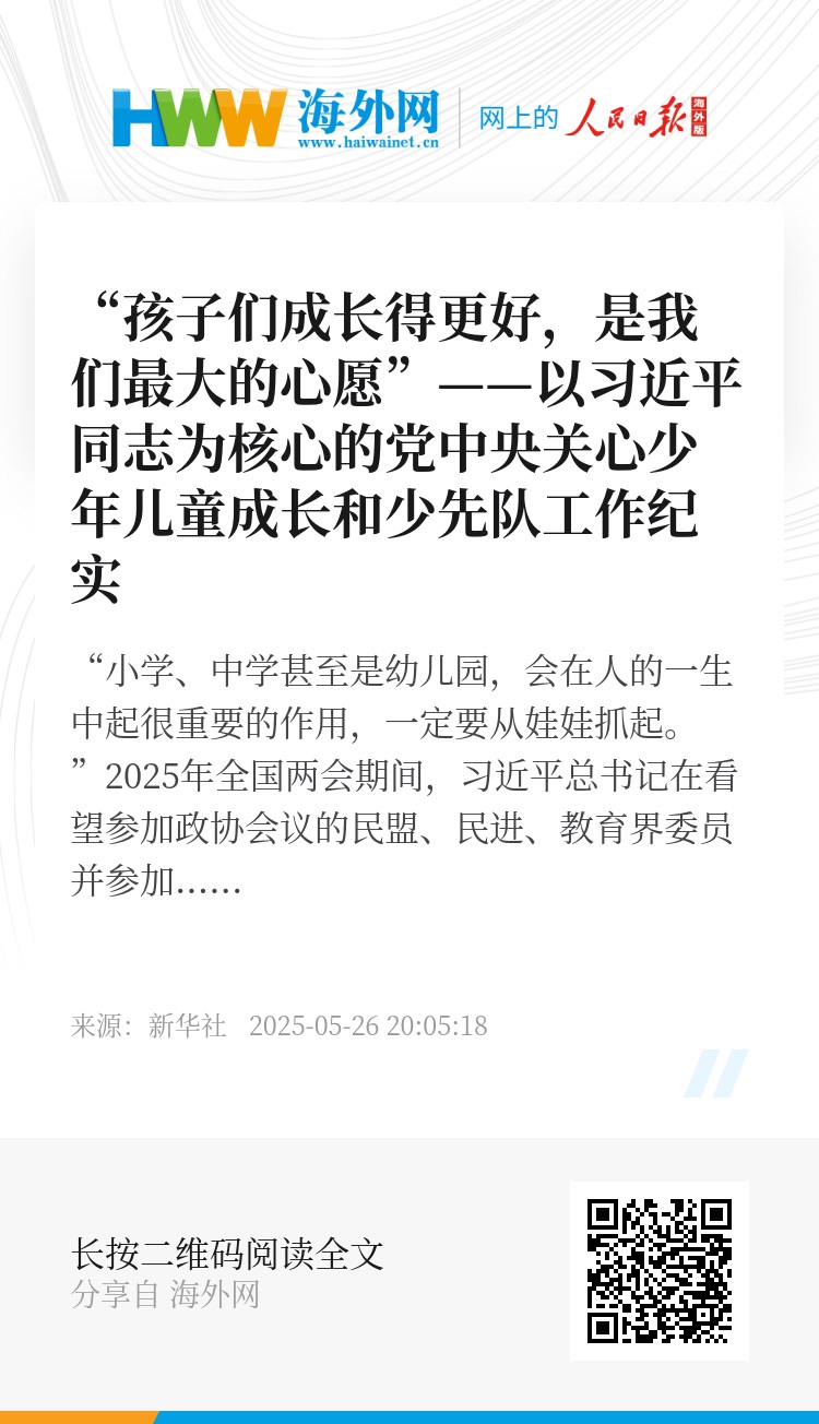 制定《中国儿童发展纲要(2021-2030年)》,从顶层设计上保障儿童健康成长;修订《中华人民共和国未成年人保护法》,撑牢孩子们的“保护伞”;出台《教育强国建设规划纲要(2024-2035年)》,为少年儿童构建更包容、更优质的教育生态……