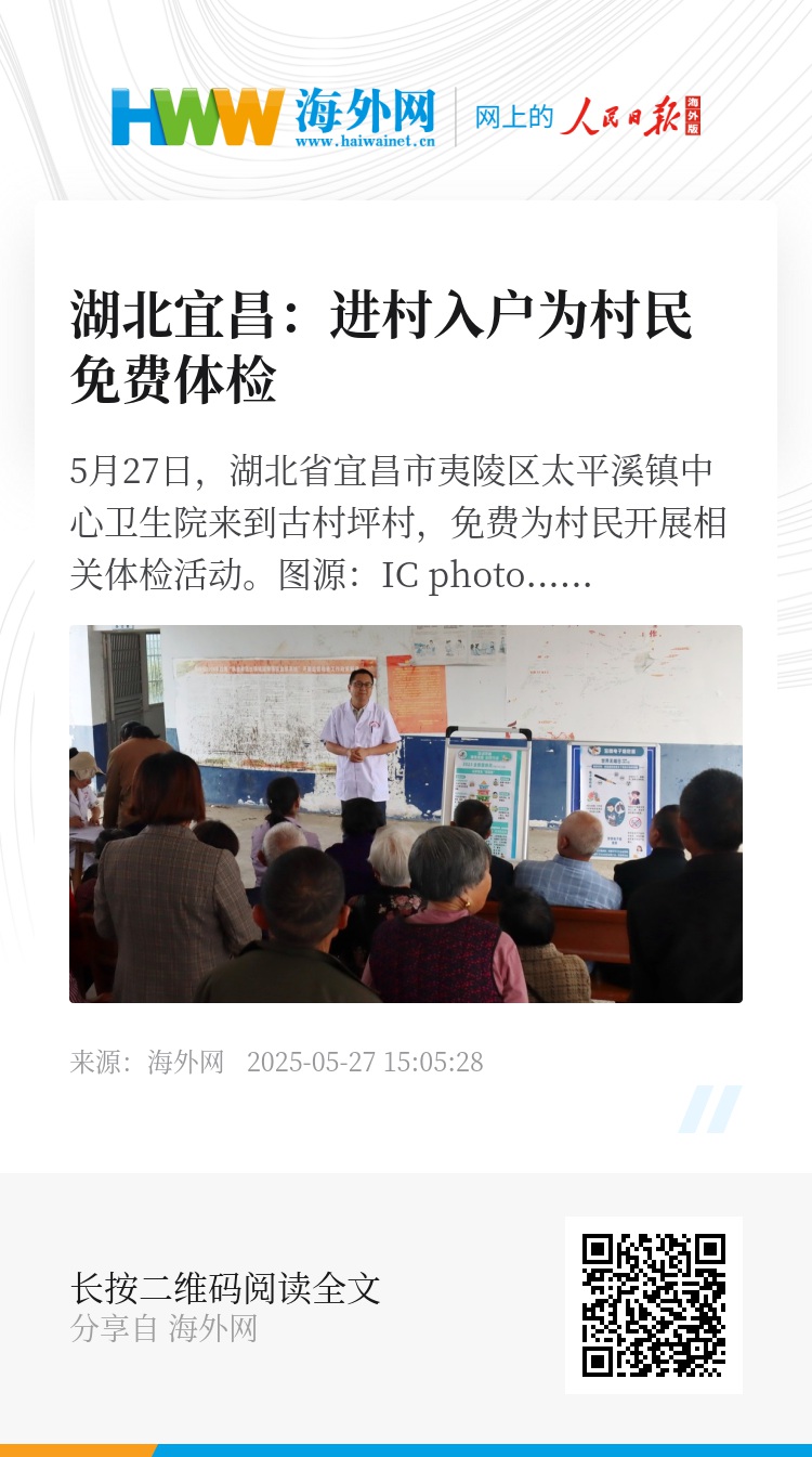 32865814,.湖北宜昌:进村入户为村民免费体检,.2025-05-27 15:51:28,.204589,.黄之安、侯兴川
