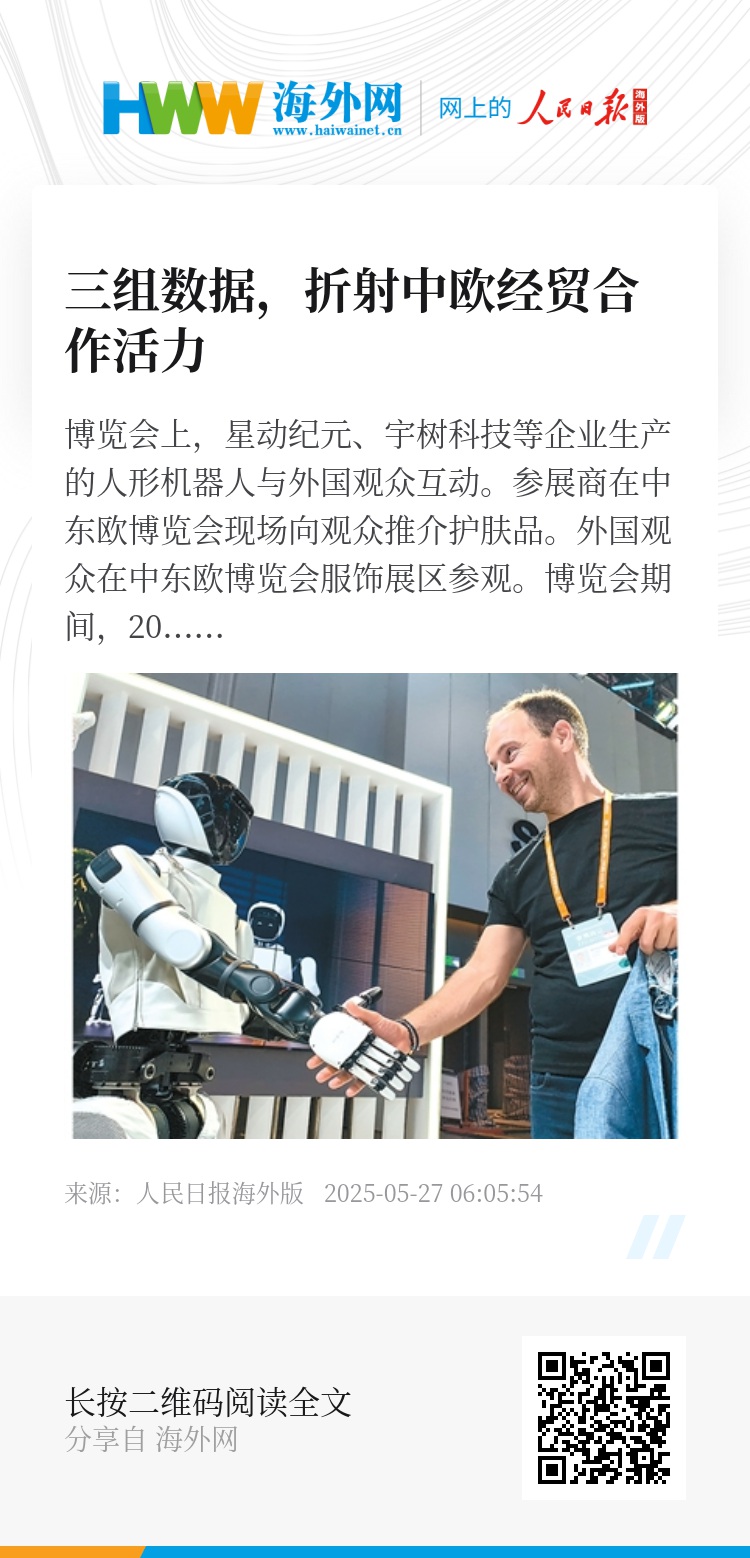 这场盛会上,中欧客商拥抱老相识、迎接新朋友、展望好前景。三组数据,折射出中欧经贸合作的强劲活力。