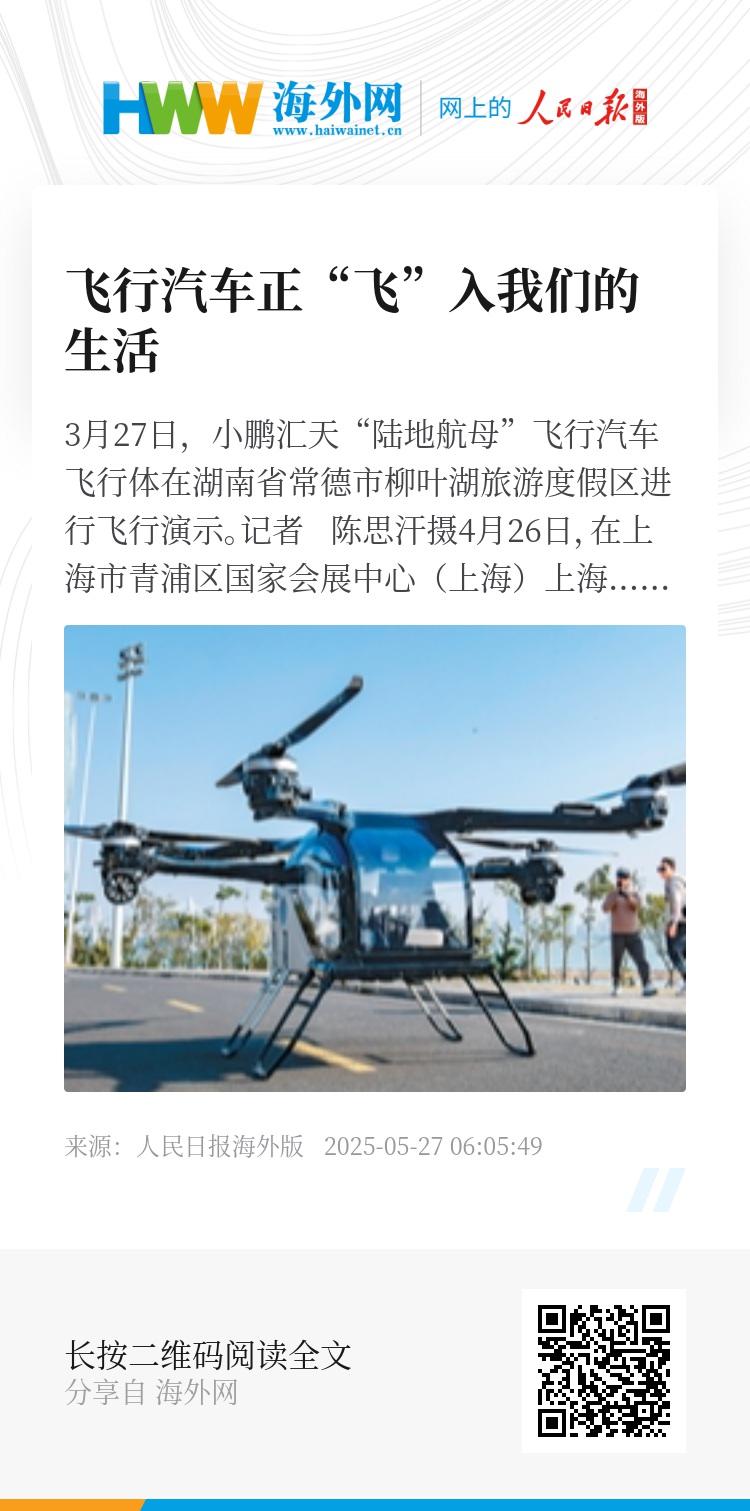 今年以来,飞行汽车备受关注,得益于航空工业、新能源汽车、5G、人工智能等产业蓬勃发展,国产飞行汽车已积累起产业基础,在技术创新、装备水平等方面有竞争优势。当创新让汽车“长出翅膀”,飞行汽车正在“飞”入我们的生活。