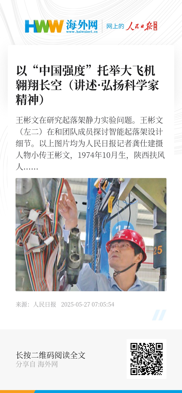 2017年,在大飞机研制中开创基于数字孪生的全机强度虚拟实验新模式;2022年,研制自主可控大型结构分析软件,解决了结构分析软件卡脖子难题;2024年,结合人工智能发展新趋势研究数智强度系统工程……“凡是过往皆为序章,凡是未来必为华章。”这是王彬文经常用来勉励团队的话,这何尝不是他带领团队多年如一日、以归零心态奋发有为的真实写照。(记者 张 铁 龚仕建)