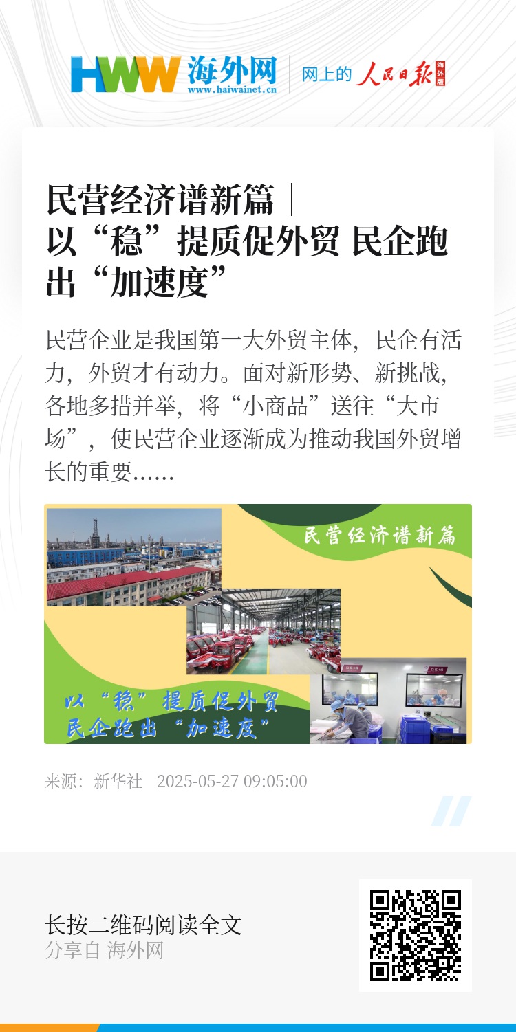 民营企业是我国第一大外贸主体,民企有活力,外贸才有动力。面对新形势、新挑战,各地多措并举,将“小商品”送往“大市场”,使民营企业逐渐成为推动我国外贸增长的重要力量。