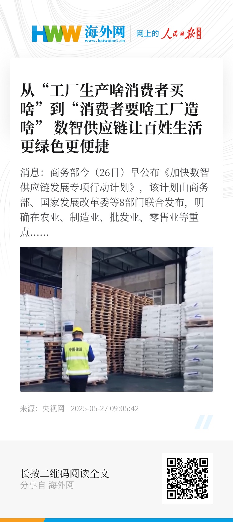 从“工厂生产啥消费者买啥”到“消费者要啥工厂造啥”,从“等三天”到“半小时达”,数智供应链像一条看不见的“智能纽带”,让老百姓的生活更便捷、更绿色。