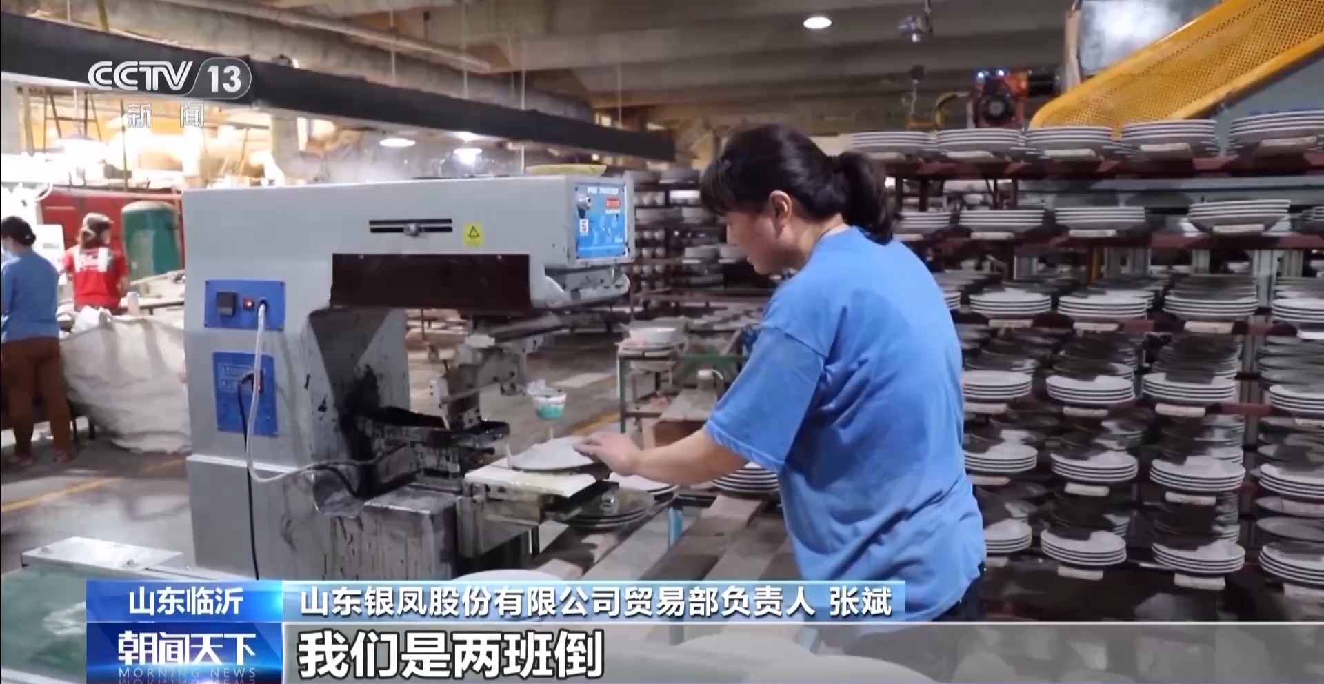 山东银凤股份有限公司贸易部负责人 张斌:例如在不同的岗位采取了不同的工作方式,比如在半成品岗位,我们实行的是两班倒,然后在烧成环节我们是三班倒来完成订单。
