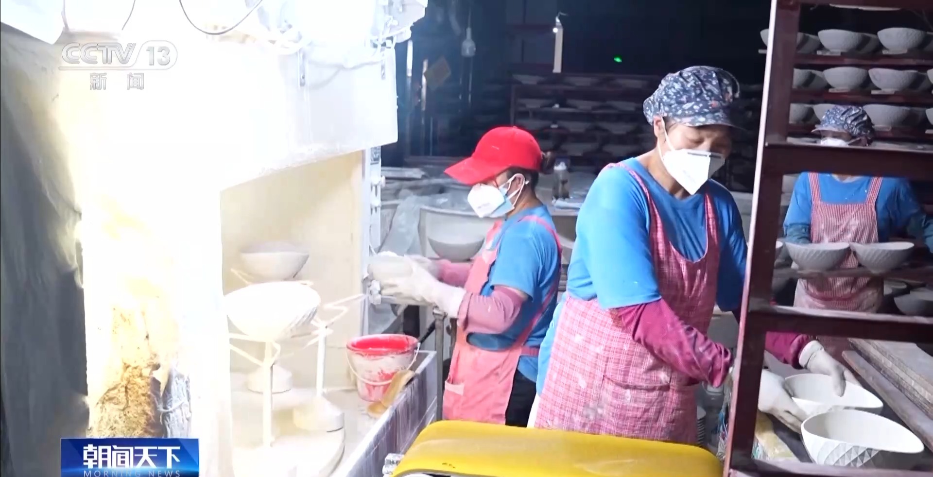 虽然是晚上9点多,记者在来到企业厂区时,生产车间灯火通明,工人正在对陶瓷产品进行滚压成形、施釉等工序,企业的销售负责人张斌告诉记者,他们企业两个厂区的6条生产线已经全部开启。