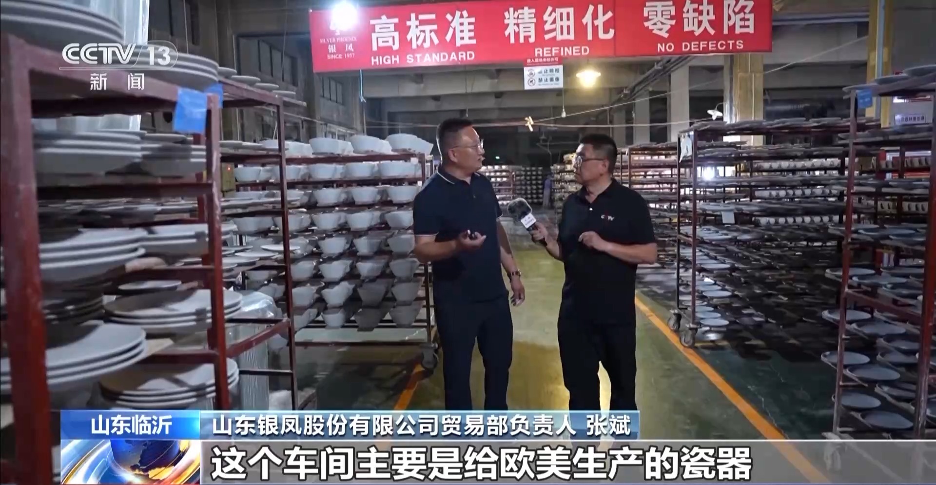 山东银凤股份有限公司贸易部负责人 张斌:这个车间主要是给欧美生产的瓷器。欧洲大约占40%,美国大约占40%。