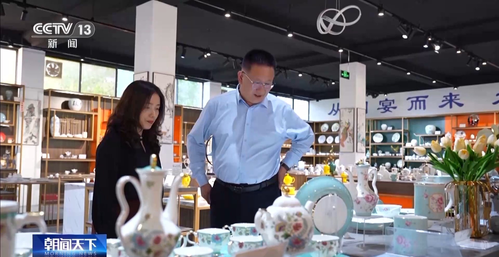在“2025山东省外贸优品购物季”活动现场,一家陶瓷企业在忙着对接国内订单的同时,不断收到美国客户的订单。