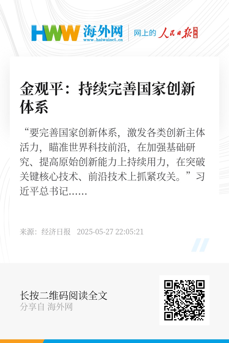 当前,全球创新格局深刻调整,国际科技竞争正日益演化为创新体系的比拼。面对新形势新任务新挑战,我们要以系统思维完善国家创新体系,持续提升创新效能,为实现高水平科技自立自强提供坚实支撑。(本文来源:经济日报 作者:金观平)