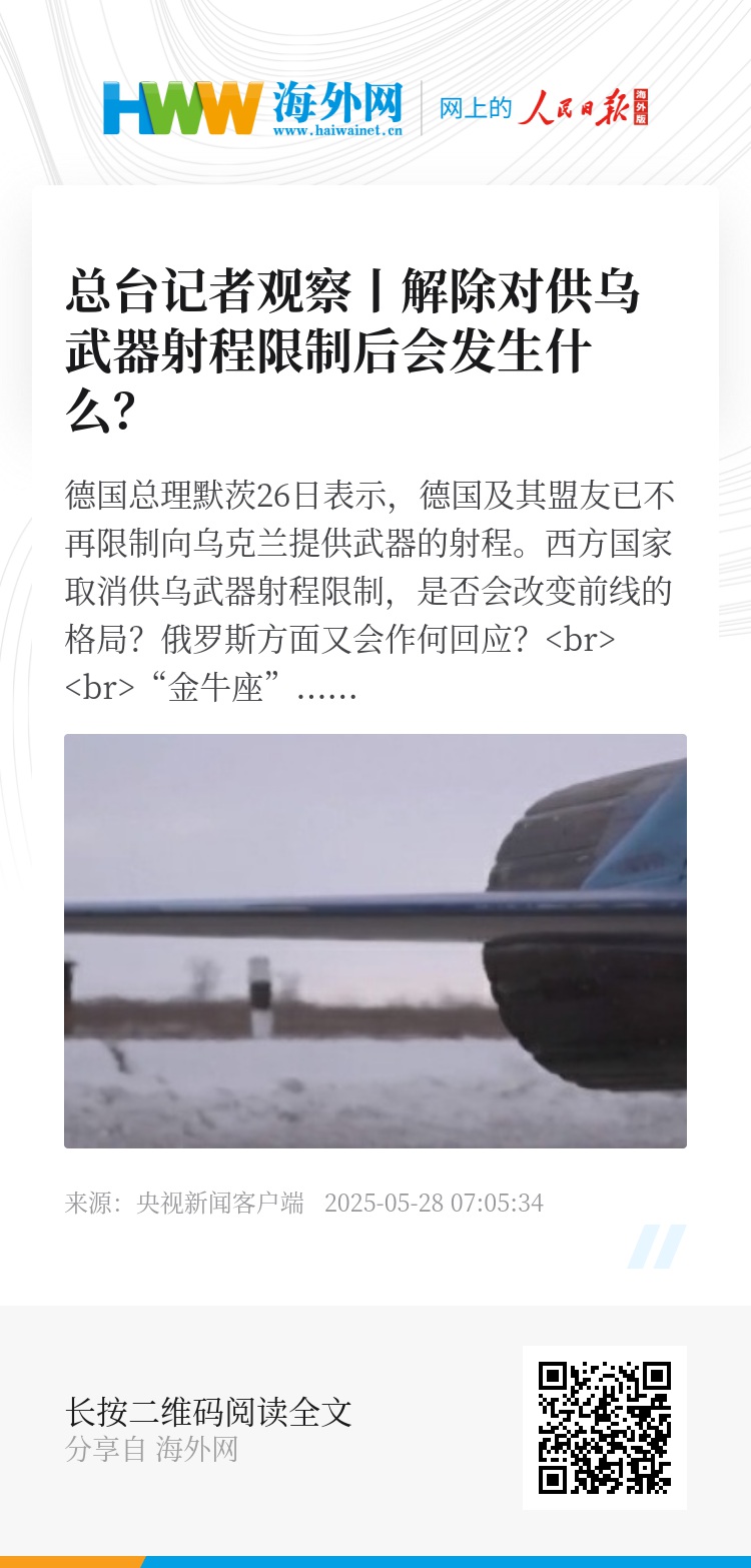 德国总理默茨26日表示,德国及其盟友已不再限制向乌克兰提供武器的射程。西方国家取消供乌武器射程限制,是否会改变前线的格局?俄罗斯方面又会作何回应?