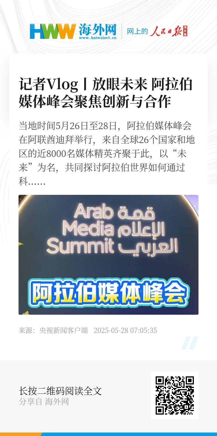 当地时间5月26日至28日,阿拉伯媒体峰会在阿联酋迪拜举行,来自全球26个国家和地区的近8000名媒体精英齐聚于此,以“未来”为名,共同探讨阿拉伯世界如何通过科技、青年与创新重塑媒体格局。为期三天的议程中,175场会议和35场研讨会密集展开,300多位演讲嘉宾重点探讨联合制作、内容共享等合作机制。