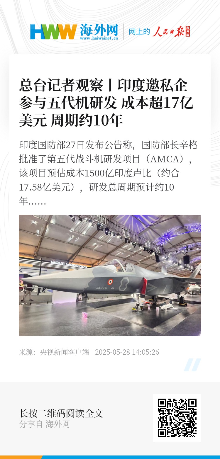 印度前空军司令、退役空军上将帕杜瑞亚(RKS Bhadauria)在接受当地媒体采访时指出,印度目前处于对抗环境,而巴基斯坦拥有最新的技术。从传感器到生存能力,隐形性能对于任何参与战斗或进攻行动的飞机来说都至关重要。隐形性能对于延迟被发现以及在极其恶劣的环境中执行任务至关重要。拥有真正的隐形飞机才是最佳选择。(总台记者 张玥)