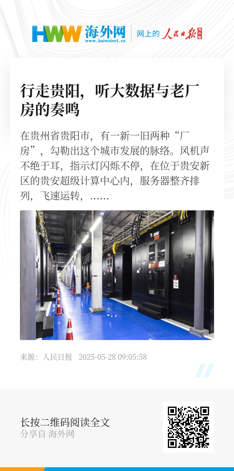 数据中心是贵州新的“厂房”,它装着服务器,产生算力,为数字经济高质量发展提供支撑。过去,贵州的大多数数据中心是“以存为主”,在全球人工智能快速发展的背景下,贵州不再满足于做一个大型“U盘”。“智算”是人工智能发展的基础底座,贵州抢抓“风口”机遇,推动数据中心由单纯“存储中心”向“存算一体”转变,加快培育以智能算力为代表的新质生产力,成为全国智算能力最强的地区之一。