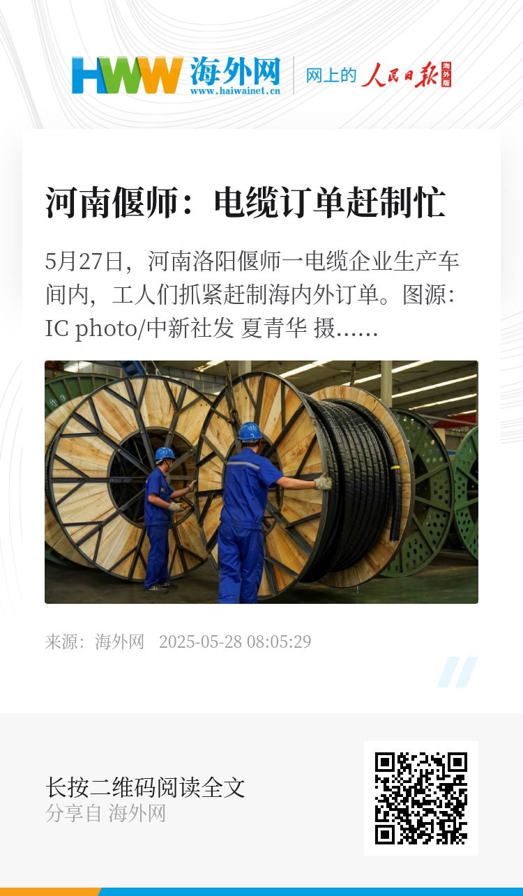 32866019,.河南偃师:电缆订单赶制忙,.2025-05-28 08:48:29,.204428,.张青津、卢思宇