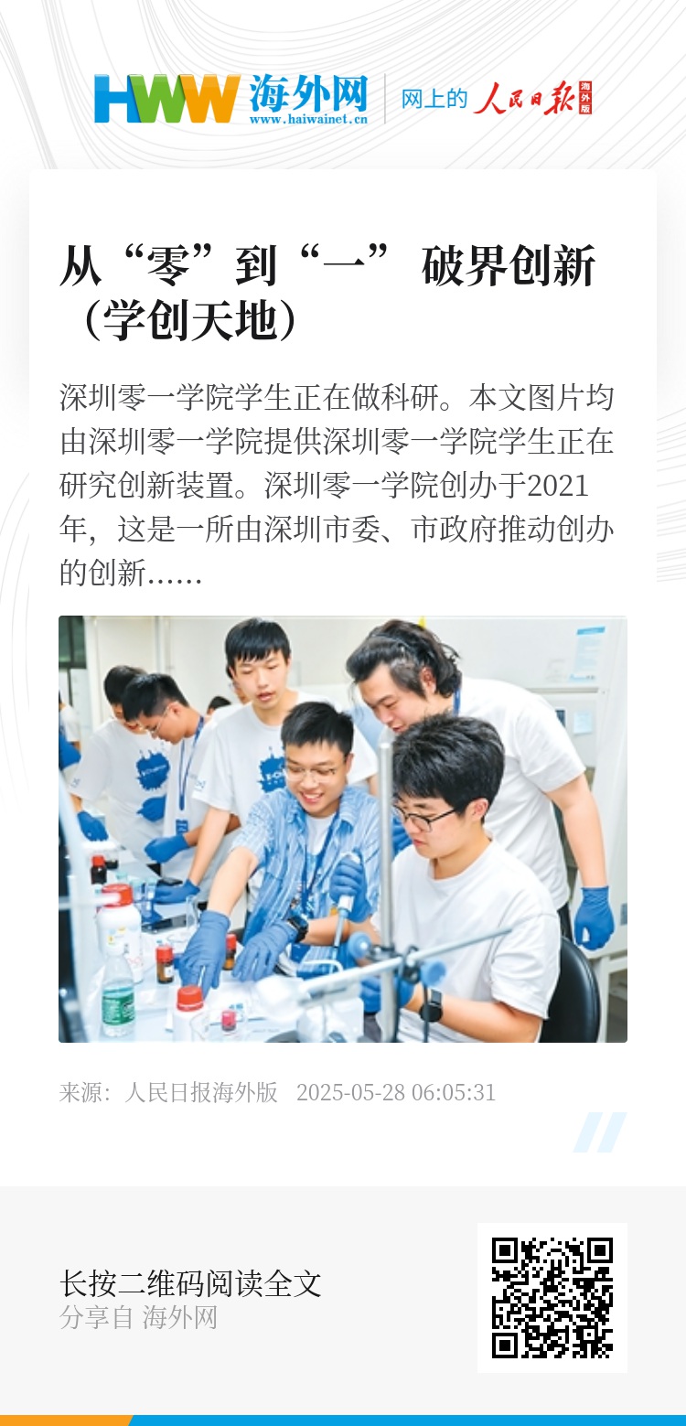 深圳零一学院创办于2021年,这是一所由深圳市委、市政府推动创办的创新型学院。深圳零一学院源自清华大学钱学森力学班(以下简称“钱班”)的探索经验,面向全国青少年学生,以项目制方式培养,致力于发掘以科技改变世界、创造未来的创新型人才。