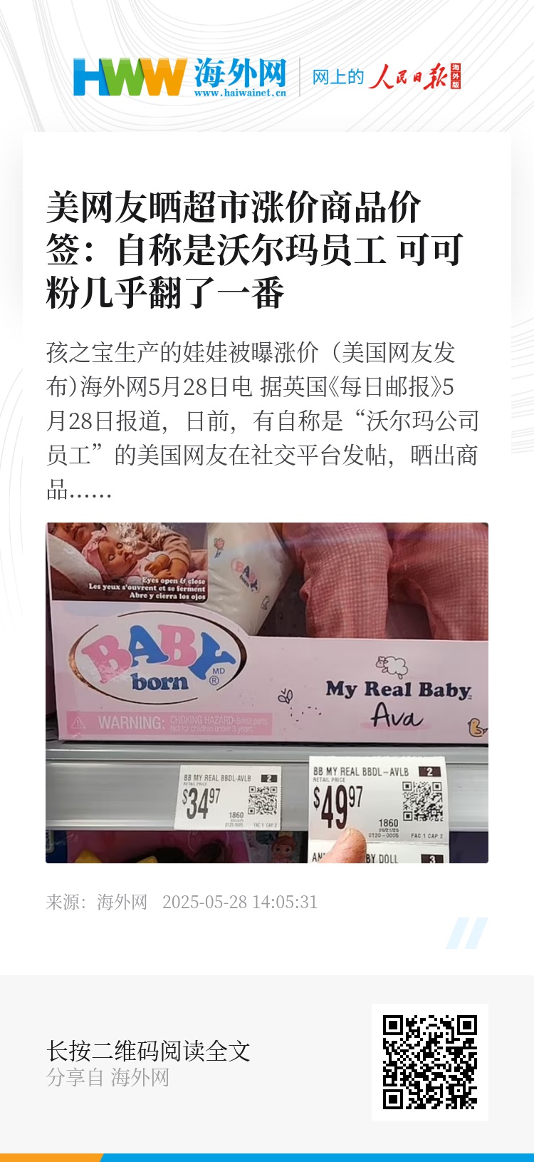 沃尔玛公司尚未回应《每日邮报》的评论请求。但报道称,随着美国各大企业纷纷对关税政策作出回应,这类在网络上浮现的帖子可能让人们了解到更多现实情况。