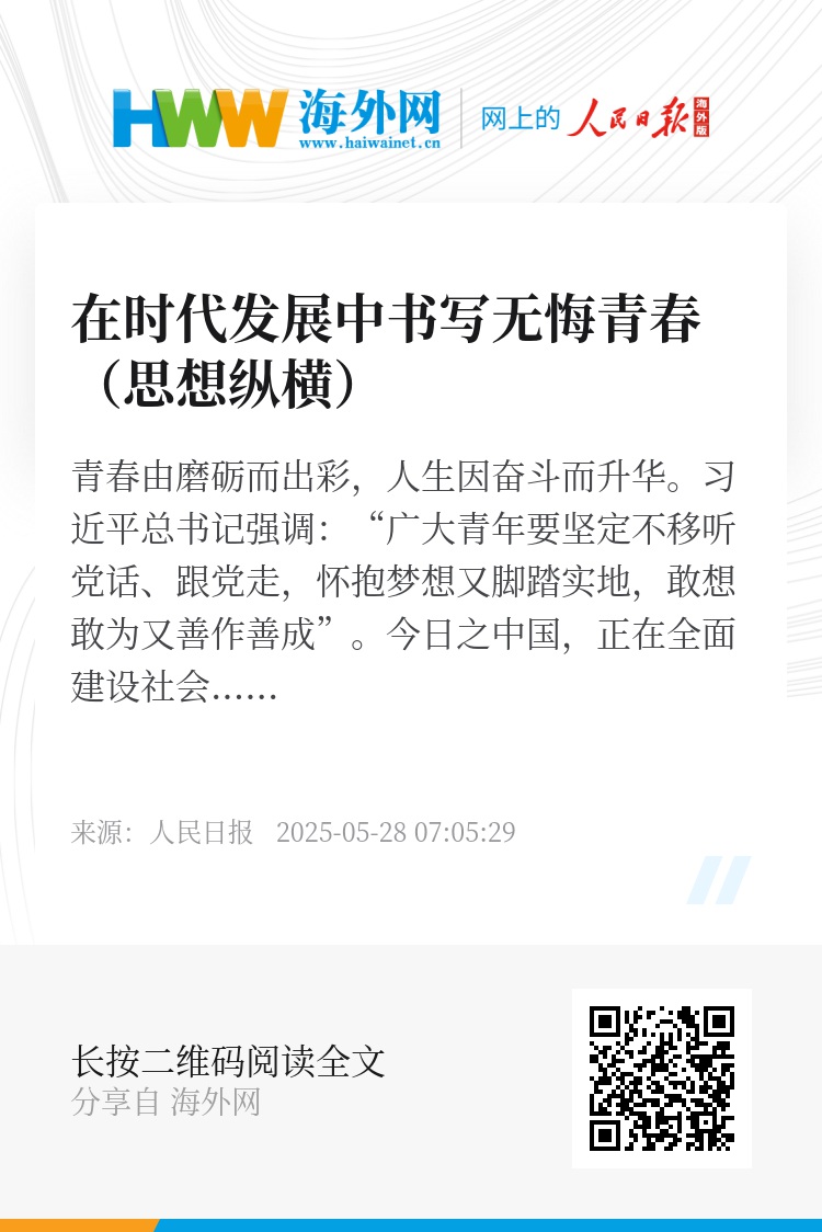 习近平总书记指出:“青年是国家的希望、民族的未来。”在这个充满无限可能和希望的时代,迎着朝阳出发,向着星辰大海前进、无论前方道路多么曲折坎坷,只要心中有志向,脚下就有力量,广大青年朋友就能不负青春,在推进中国式现代化的伟大征程中实现青春梦想。(司春燕)