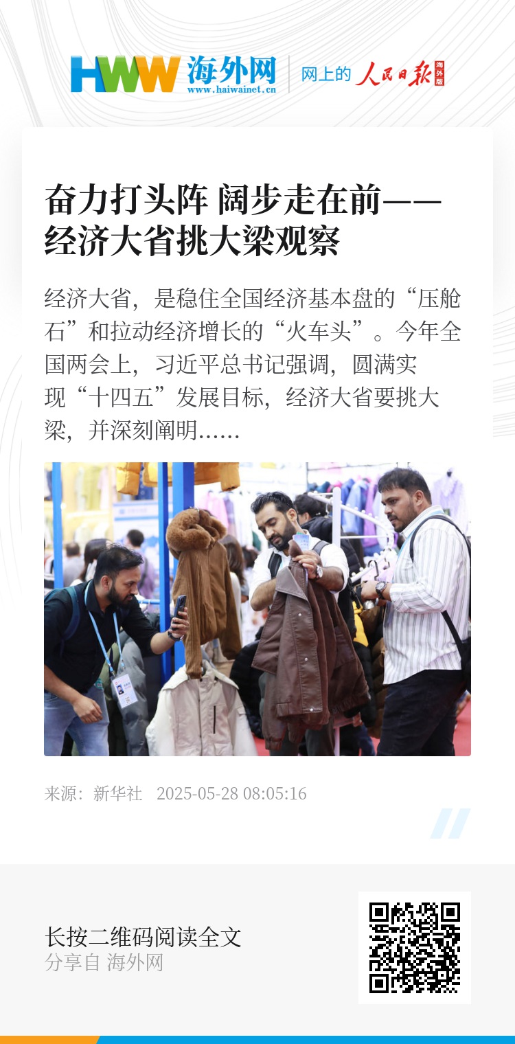 广东借“广交会”助企业开拓海外市场,山东举办展会支持外贸企业拓内销,江苏多地优化服务织密企业“出海”新通道……这些举措从稳存量和拓增量双向发力,加快推动内外贸一体化。