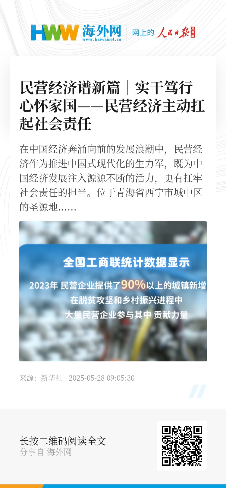 在中国经济奔涌向前的发展浪潮中,民营经济作为推进中国式现代化的生力军,既为中国经济发展注入源源不断的活力,更有扛牢社会责任的担当。