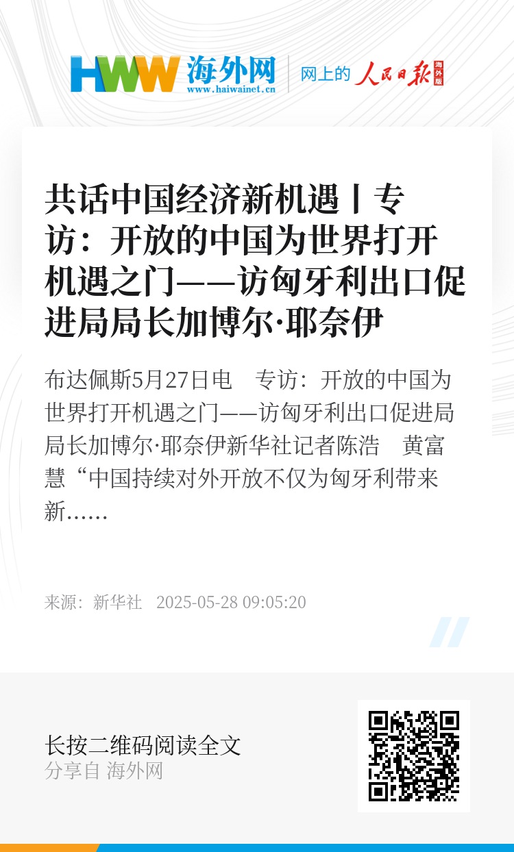 新华社布达佩斯5月27日电 专访:开放的中国为世界打开机遇之门——访匈牙利出口促进局局长加博尔·耶奈伊