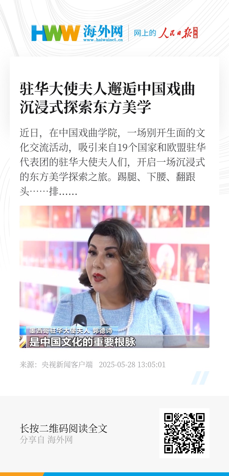 近日,在中国戏曲学院,一场别开生面的文化交流活动,吸引来自19个国家和欧盟驻华代表团的驻华大使夫人们,开启一场沉浸式的东方美学探索之旅。