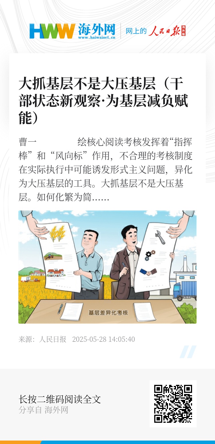 “让考核不再成为负担,真正成为督促和激励。”张书军说,“基层干部从频繁的、不符合实际的考核中解脱出来,有更多精力到园区企业和田间地头倾听民意、共商发展,为经济社会发展提供坚实保障。”(记者 罗阳奇)