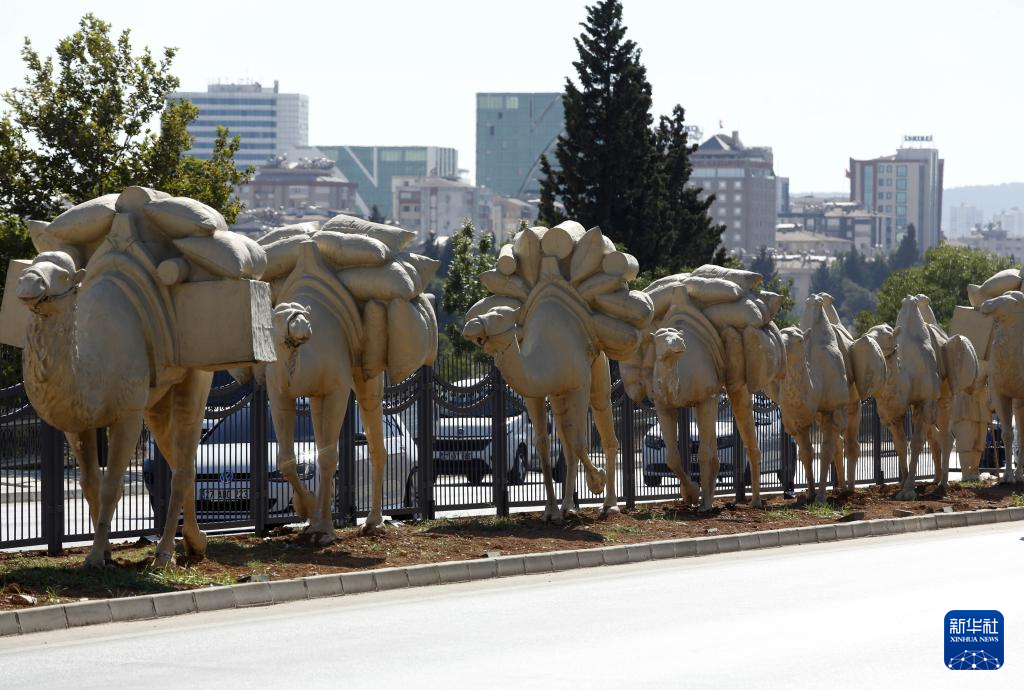 这是5月24日在土耳其加济安泰普拍摄的古丝绸之路骆驼商队群雕。新华社发(穆斯塔法·卡亚摄)