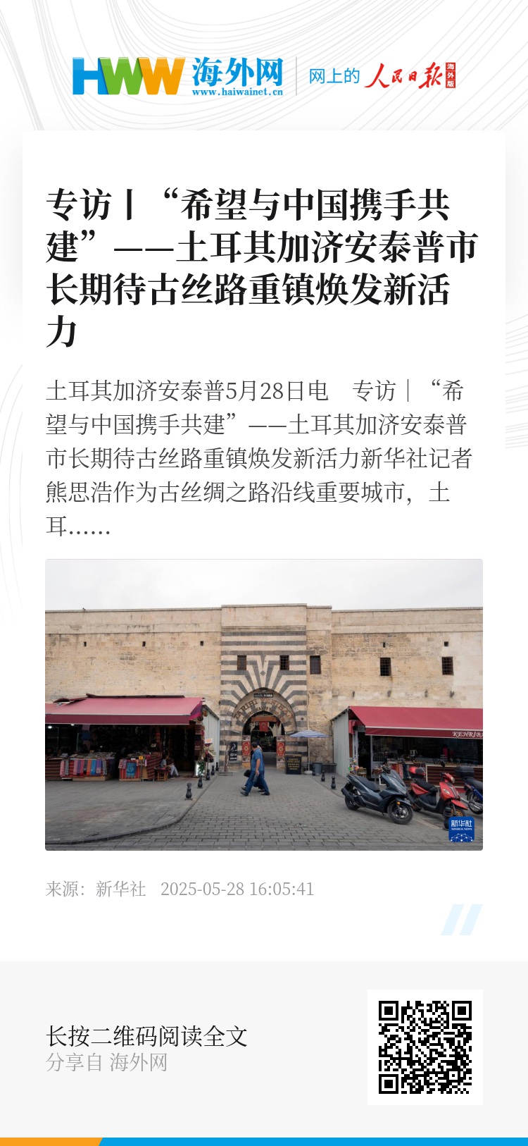 新华社土耳其加济安泰普5月28日电 专访|“希望与中国携手共建”——土耳其加济安泰普市长期待古丝路重镇焕发新活力