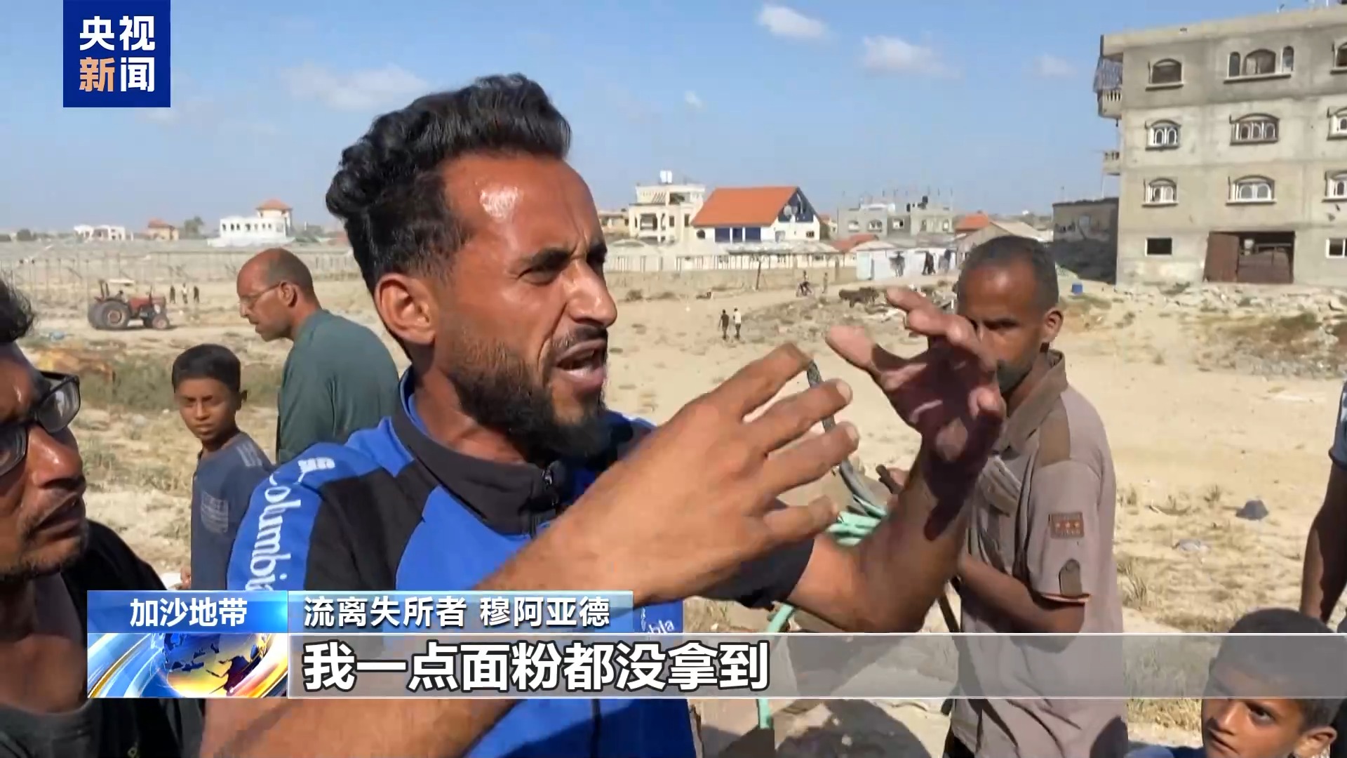 流离失所者 穆阿亚德:我当时在物资分发点。但因为人太多了,我一点面粉都没拿到。我本来是希望拿到面粉的,但因为人太多了,我一点儿都没拿到。