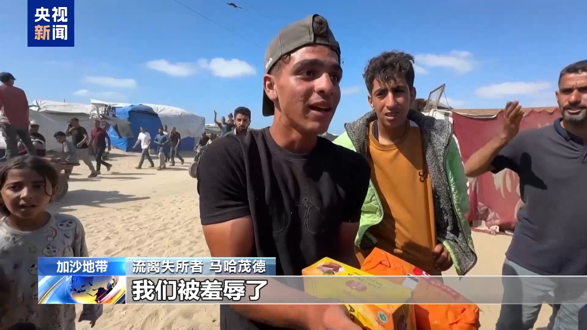 流离失所者 马哈茂德:我们想吃东西,我们很饿。我们被羞辱了。没有水,什么都没有。看看他们对我们做了什么。