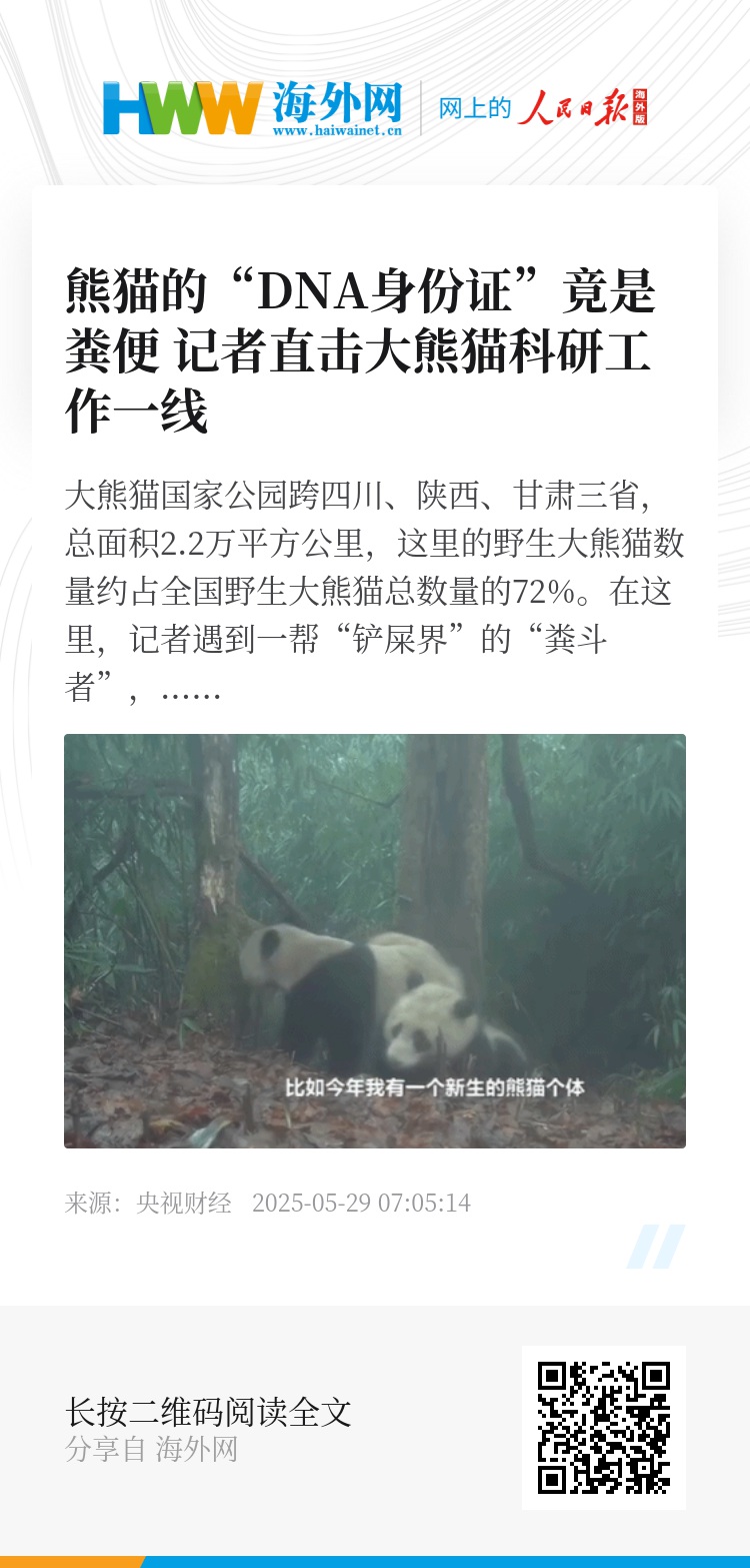 量尺寸、填表、GPS打点,科研人员让每坨“青团”都成为熊猫的DNA身份证,靠这个就能算出新生崽的爸爸是谁,简直是动物界的“亲子鉴定中心”!跟记者一起去看看,这帮“粪斗者”如何做到“屎命必达”?