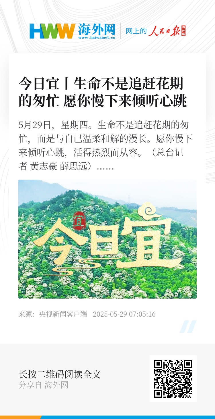 5月29日,星期四。生命不是追赶花期的匆忙,而是与自己温柔和解的漫长。愿你慢下来倾听心跳,活得热烈而从容。