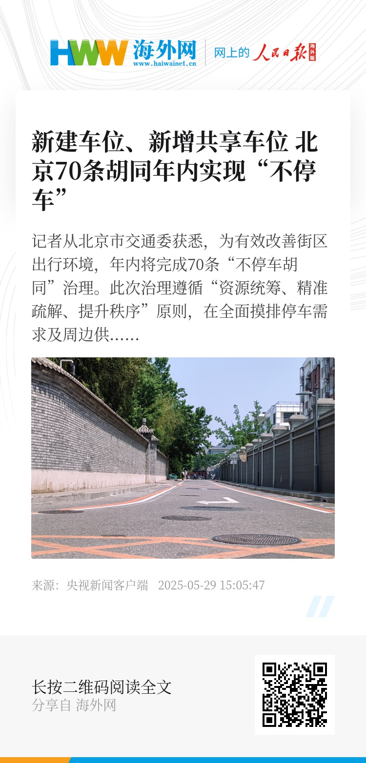 记者从北京市交通委获悉,为有效改善街区出行环境,年内将完成70条“不停车胡同”治理。