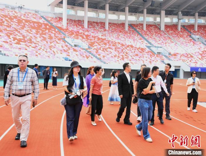 海外华媒代表走进广州天河体育馆参观走访。广东省侨办 供图