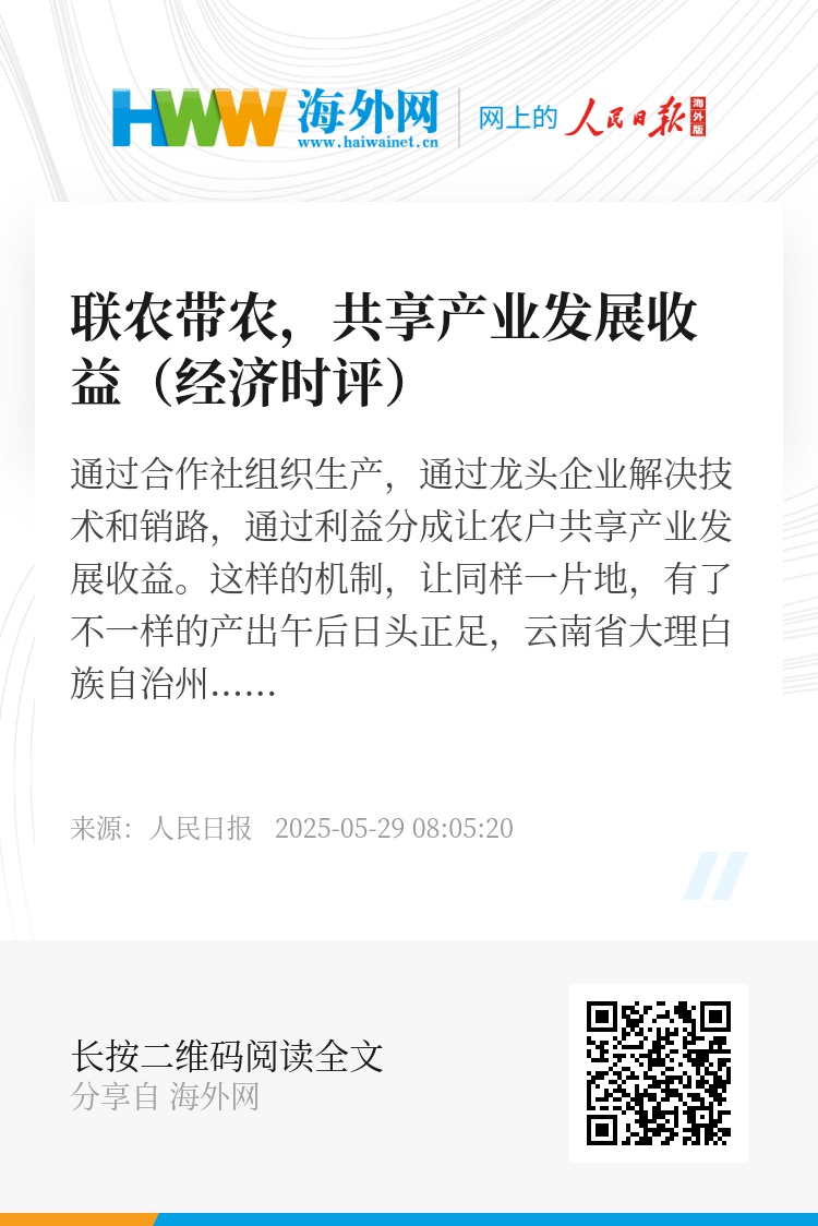 类似的联农带农机制,在云南有不少。普洱市孟连傣族拉祜族佤族自治县牛油果产业三成利润给农户,蒙自市蓝莓产业农户变身农场主能拿六成收益,各地分红比例不同,但也有相同点:通过合作社组织生产,通过龙头企业解决技术和销路,通过利益分成让农户共享产业发展收益。