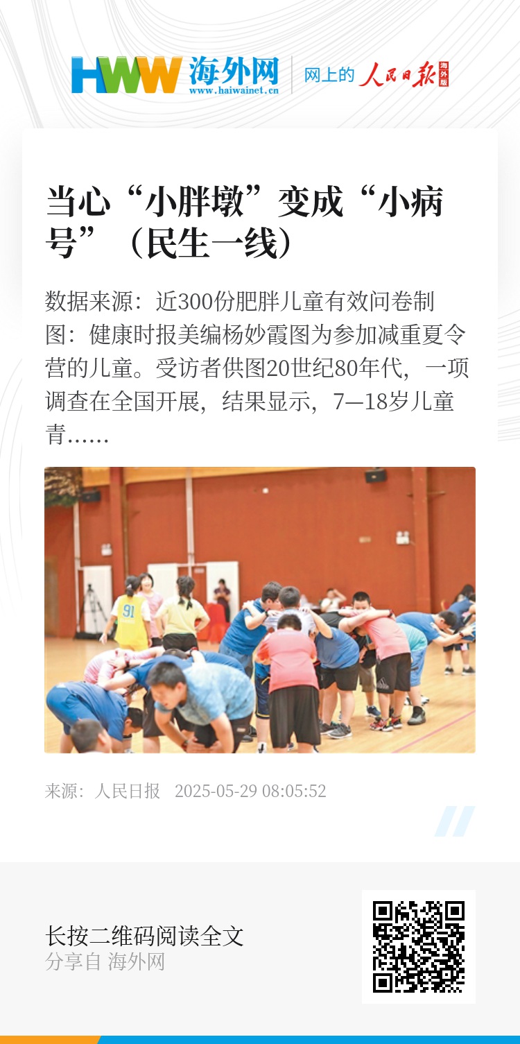 肥胖背后隐藏着健康隐患,关乎儿童身体代谢、心理健康以及成年期疾病的风险防控。