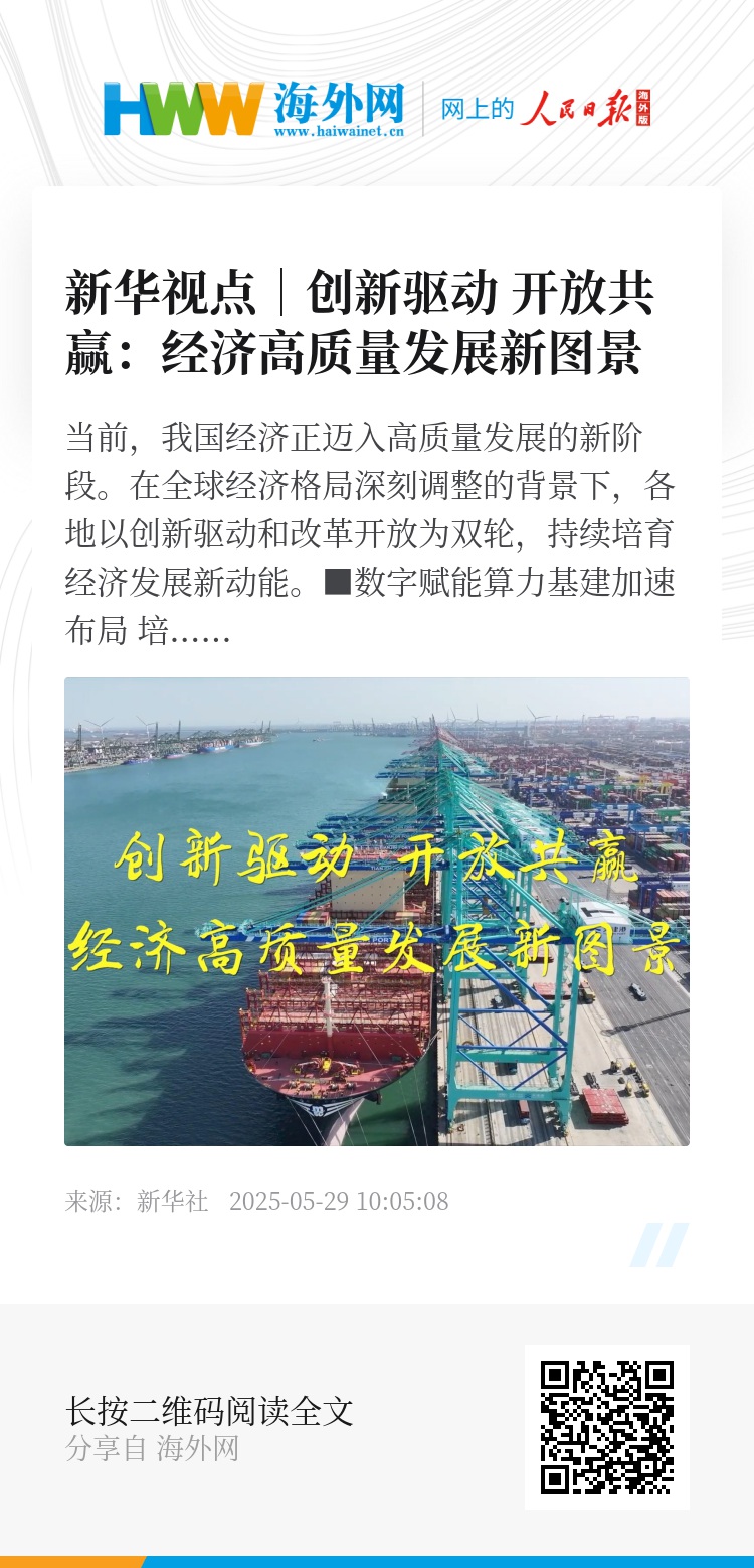 从数字基础设施的全面布局到高水平对外开放的深入推进,从关键核心技术的持续突破到现代产业体系的加速构建,我国经济正以创新为引领、以开放促发展,在高质量发展的道路上稳步前行。