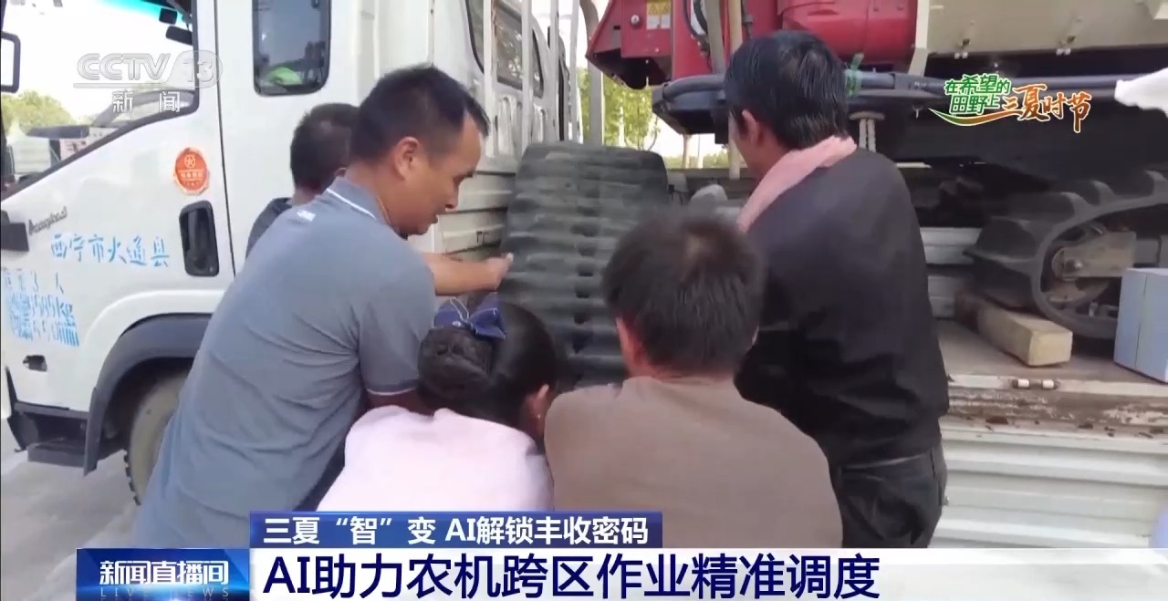 这个维修队是由后方的农机维修平台5天前调度过来的,他们原先在河南驻马店,因后台预测今年湖北襄阳提前进入收割高峰期,将有1300台农机进入,这个维修队就被紧急调度了过来。而能实现这样的精准调度,正是因为今年,农机维修服务平台接入AI大模型,根据遥感监测到的农机收割进度、跨区农机数量、机手报修工单量,自动生成农机维修车调度建议,保证湖北、河南等麦区每一站都有充足的农机维修服务资源。