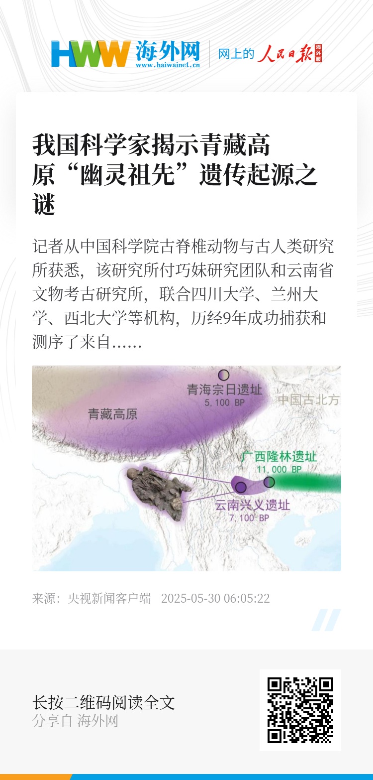 青藏高原人群的遗传起源一直是学界关注的热点,其中“幽灵祖先”的存在长期以来缺乏直接来源的代表性人群,其遗传结构一直存在未解之谜。本研究团队此前发表的研究成果显示,距今5100年前至今,青藏高原人群的遗传成分约80%源自9500年前至4000年前的中国北方人群,但剩余的20%来源不明,被学界称为“幽灵祖先”。这一成分的来源一直未能确定,倍受国际关注。