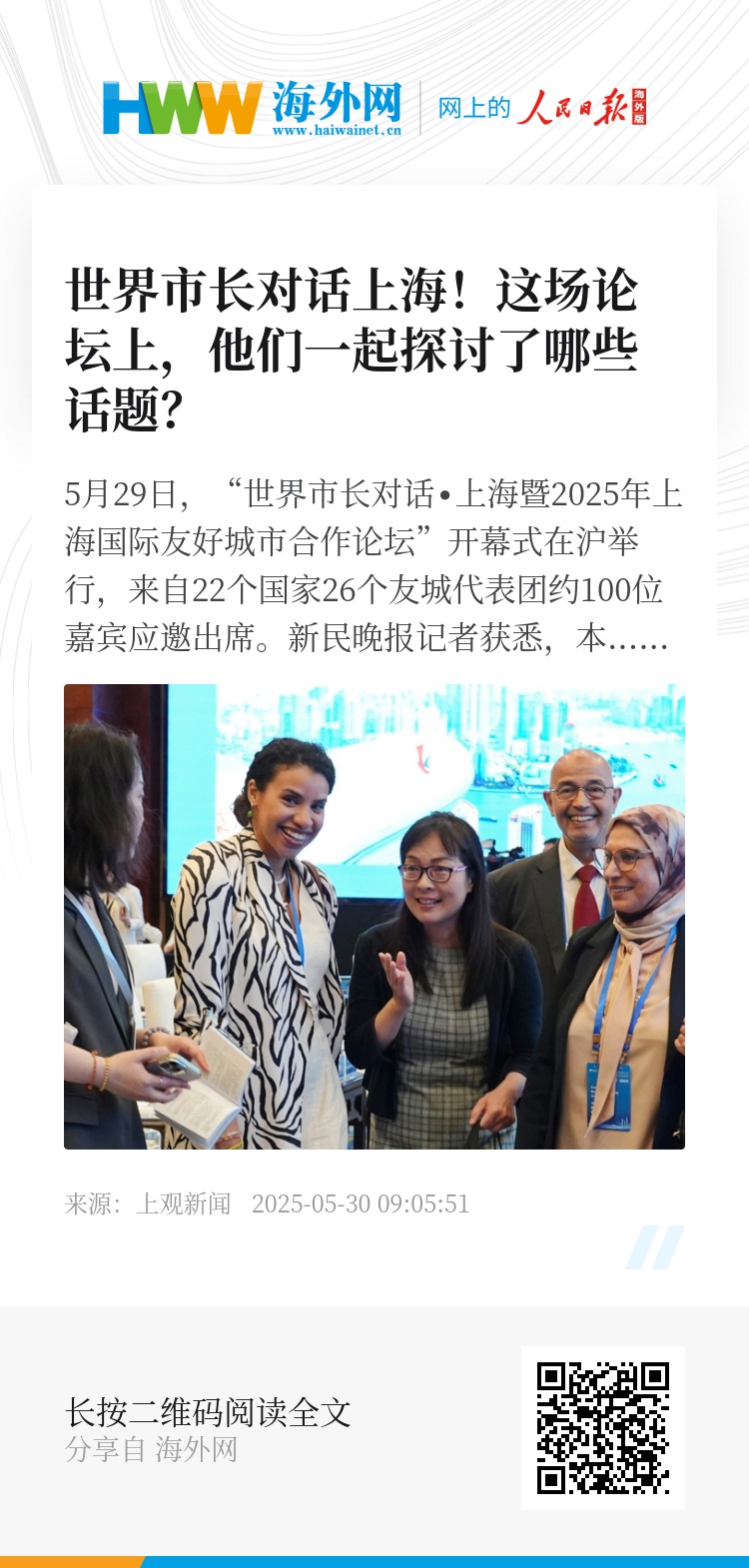 5月29日,“世界市长对话∙上海暨2025年上海国际友好城市合作论坛”开幕式在沪举行,来自22个国家26个友城代表团约100位嘉宾应邀出席。新民晚报记者获悉,本届论坛主题为“绿色、低碳、发展、创新——面向未来的城市合作”,设置“绿色低碳赋能城市持续发展”和“青年活力激发城市创新未来”两个议题,重点探讨绿色低碳城市治理和青年创新活力激发等内容,激发合作潜力、深化合作内涵。