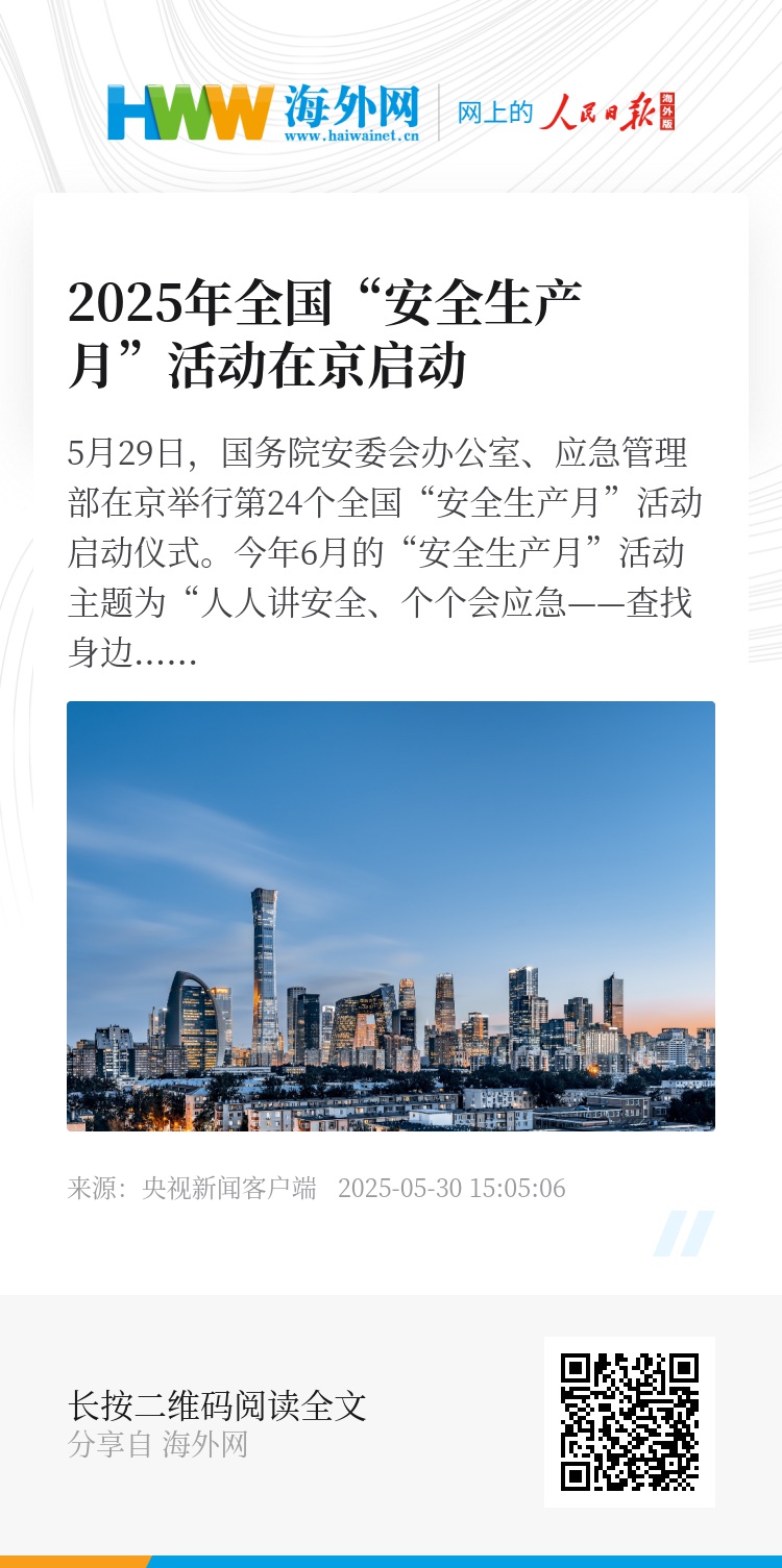 5月29日,国务院安委会办公室、应急管理部在京举行第24个全国“安全生产月”活动启动仪式。