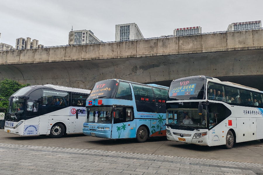 上午,随着发车指令声响,搭载乘客的9辆客车和满载蔬菜、日用百货的5辆货车分别从中国东盟自贸区昆明国际客运站、西双版纳东盟国际综合交通服务中心及云南建投物流云上营家国际供应链示范中心同步发车,共同开展跨境运输任务。其中,客车车队从磨憨口岸出境,经过老挝磨丁口岸后开往老挝会晒;货车车队从中国昆明出发,从勐腊勐满口岸出境,途经老挝班海口岸、班象果,到达老挝会晒。货车全线单程约880公里,客车全线单程约910公里,预计用时3天。