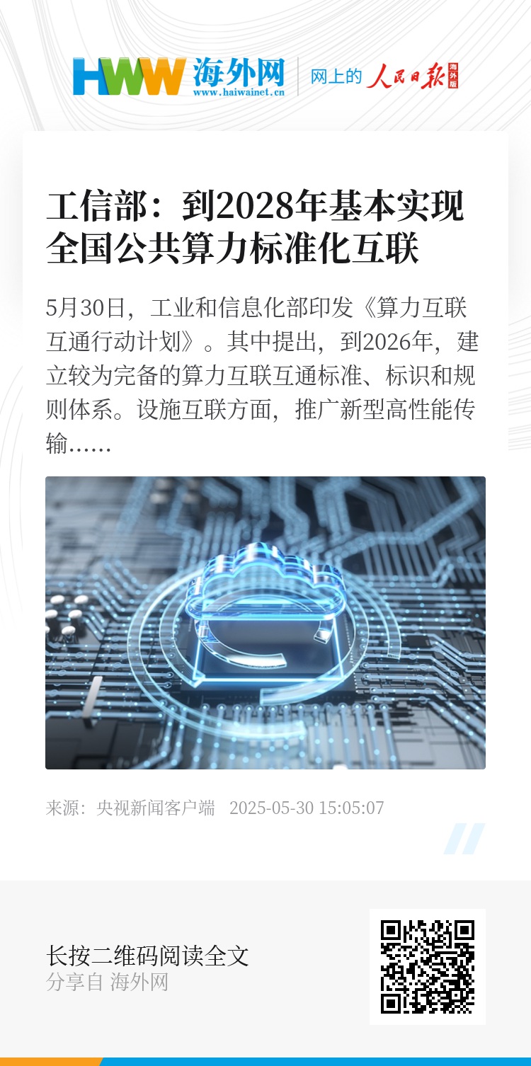 5月30日,工业和信息化部印发《算力互联互通行动计划》。