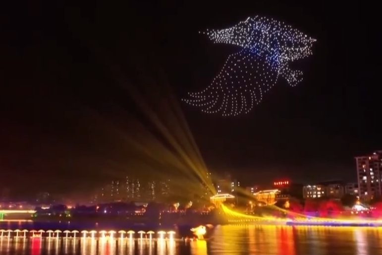 不仅如此,2000架无人机通过调整编队,向大家呈现出了“龙凤呈祥,端午安康”等一系列充满美好寓意的祝福和图案。