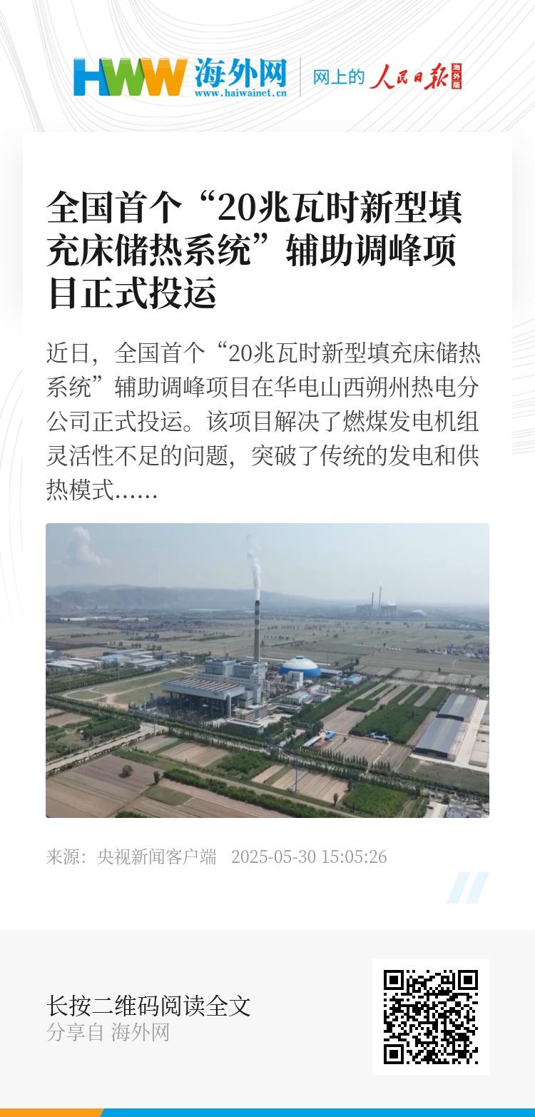 近日,全国首个“20兆瓦时新型填充床储热系统”辅助调峰项目在华电山西朔州热电分公司正式投运。该项目解决了燃煤发电机组灵活性不足的问题,突破了传统的发电和供热模式,是燃煤机组灵活性改造领域的一次有效的技术突破和尝试。
