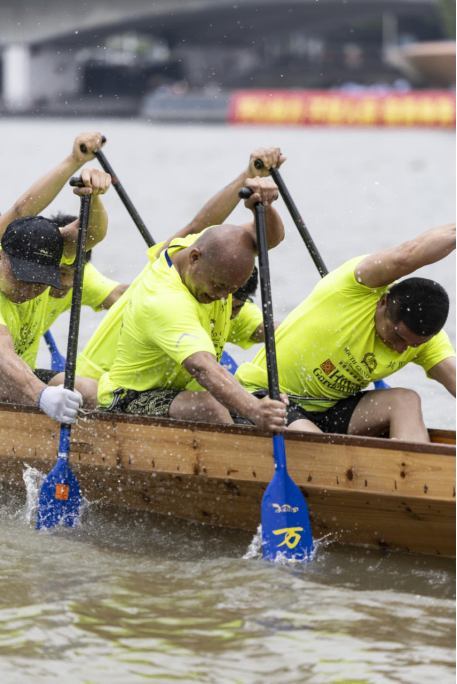 活动当天,上午11时许,鼓声响起,集体游龙活动拉开帷幕。东江两岸锣鼓喧天,江面浪花四溅,龙舟健儿们快速划动船桨、齐整用力,在江中全力搏风击浪,龙舟如离弦之箭飞快向前。“龙舟精神的内涵是奋勇争先、永不服输,这也是我们每个‘龙舟人’做人做事的道理。”黄柱良说。