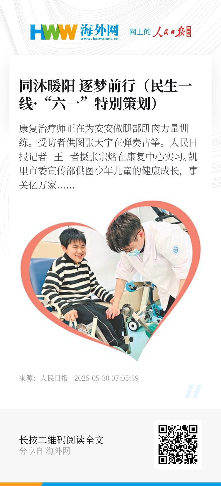 和健全人相比,他们要想在社会上实现自立、融入,整个过程会更加艰难。每一名儿童都是独特的星辰,值得被看见、被倾听、被珍视。在“六一”国际儿童节来临之际,本版推出特别策划,讲述残疾儿童努力康复、融入社会、长大后回馈社会的故事,期待更多少年儿童同沐暖阳,逐梦前行。