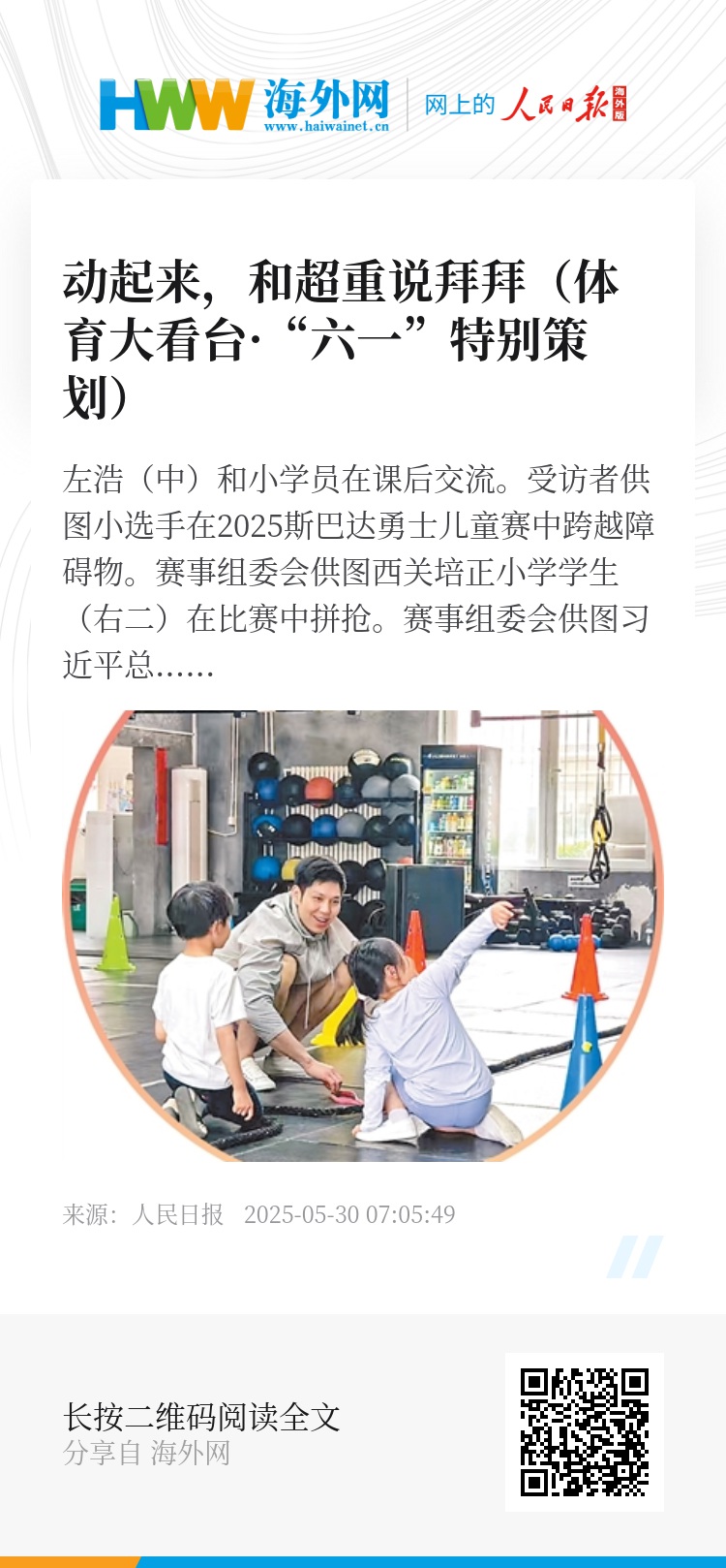 近年来,多地多方关注儿童青少年体重管理,积极培养他们体育锻炼的兴趣和爱好,丰富赛事供给,保障锻炼时间。“六一”国际儿童节将至,记者走访北京、浙江、广东等地,看孩子们如何在运动中强身健体、舒展身心,身上有汗、眼里有光。