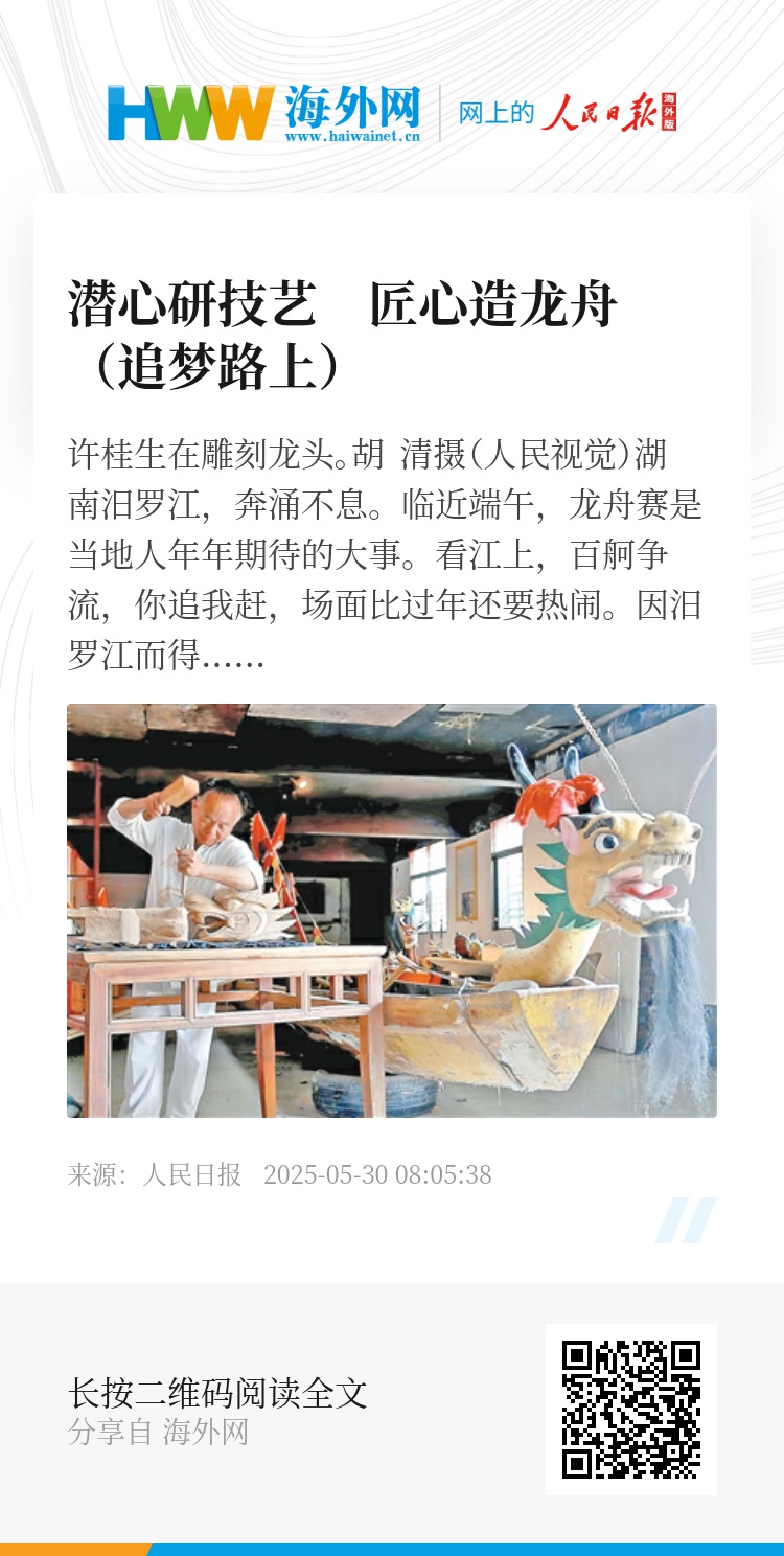 如今,汨罗所造龙舟不仅在全国多地乘风破浪,更远销欧美、日韩、东南亚等地区。“希望把龙舟造得越来越好,希望把龙舟运动推广到更多地方!”许桂生十分期待。(记者 杨 迅)