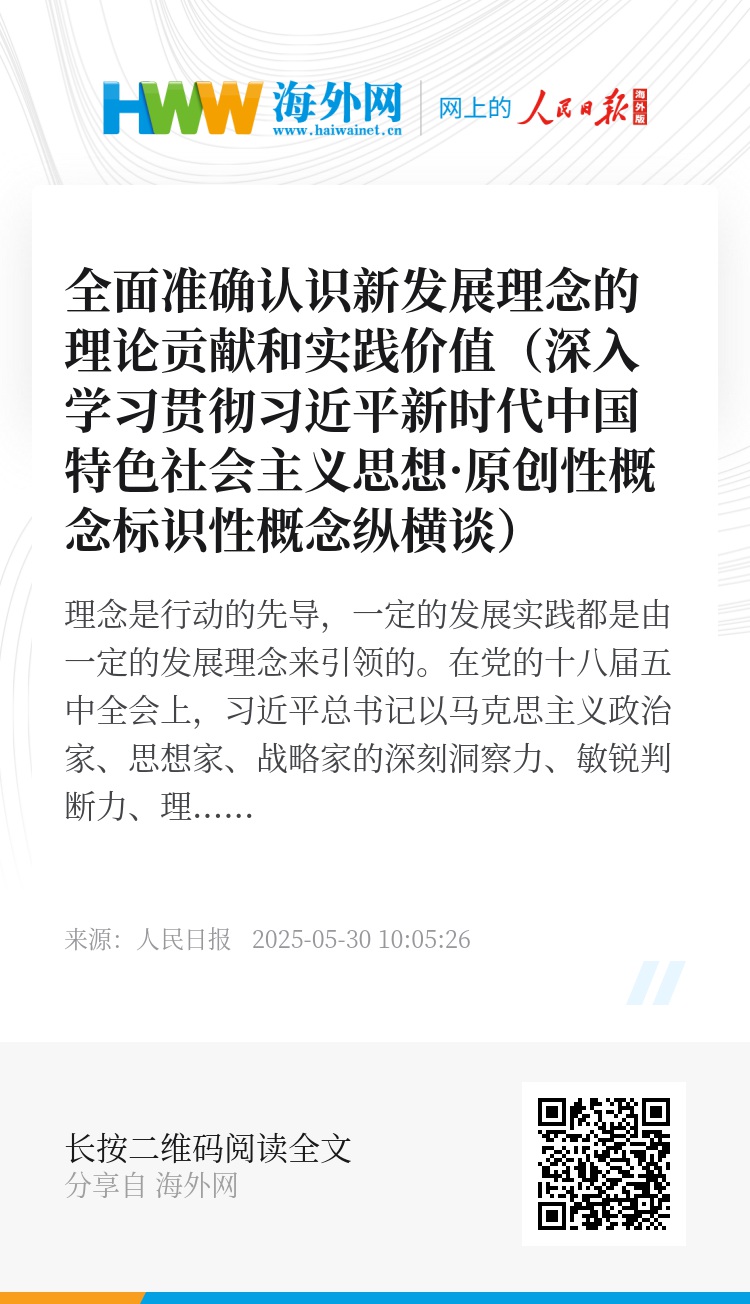 新发展理念体现了我们党对新时代经济社会发展规律的科学把握,从根本上超越了西方以资本为中心的发展逻辑,打破了“现代化=西方化”的迷思,为推动我国高质量发展提供了理念遵循,为解决世界发展难题贡献了中国方案。