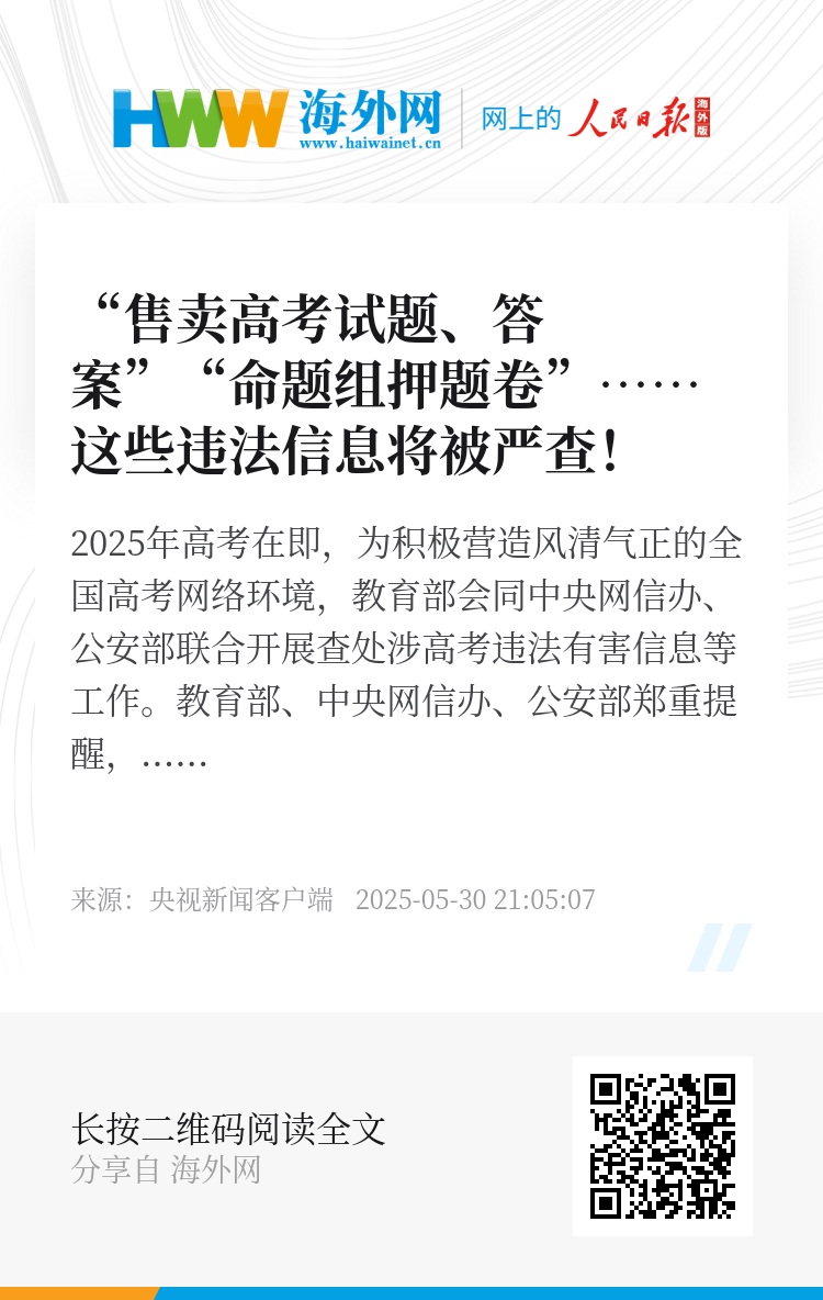 2025年高考在即,为积极营造风清气正的全国高考网络环境,教育部会同中央网信办、公安部联合开展查处涉高考违法有害信息等工作。